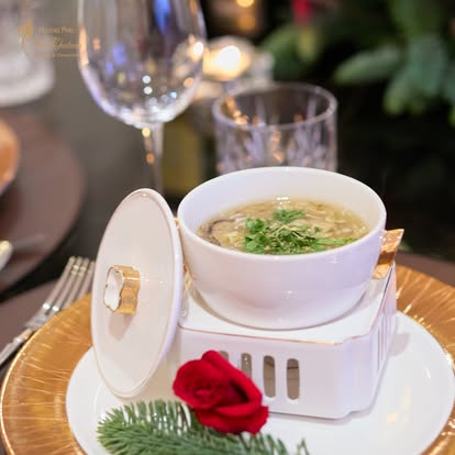 Tại The Chateau, các món khai vị luôn được chuẩn bị tươi ngon, sử dụng nguyên liệu cao cấp và được trình bày đẹp mắt trên bộ đồ ăn sang trọng.
